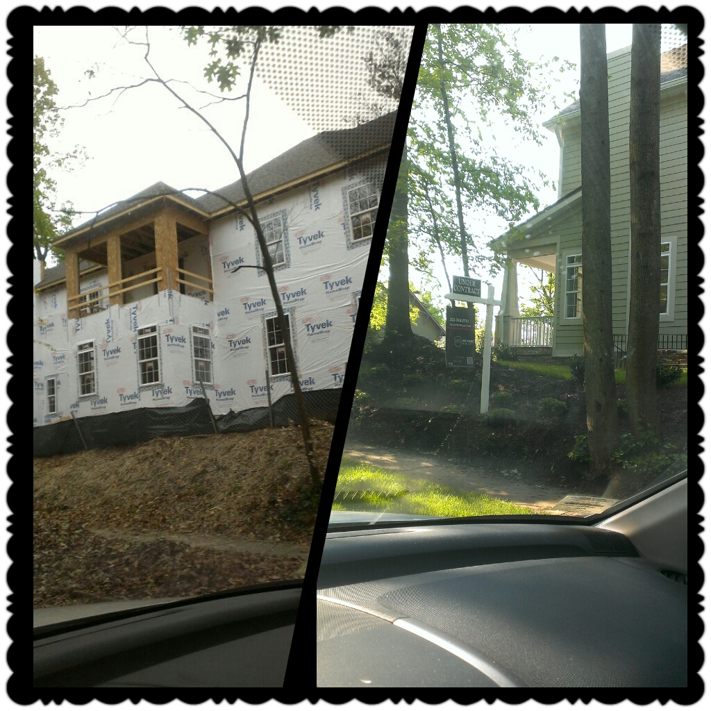 I was driving my daughter to school today and realized that a brand new house located on a plot that we have been driving by for at least 2 years is finally under contract. Last November (2012) I wrote a Facebook post noting that after almost a year of wondering what they were building on that once wooded plot, in about 2-3 weeks I noticed the house taking shape (first image in pic). In that post I wrote the following: