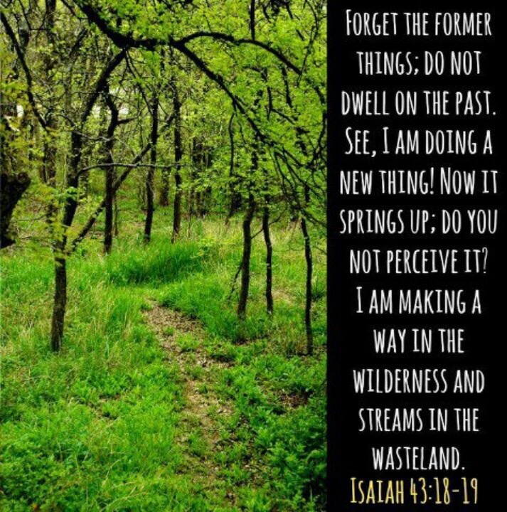 Isaiah 43: 18-19 “Remember ye not the former things, neither consider the things of old. Behold, I will do a new thing; now it shall spring forth; shall ye not know it? I will even make a way in the wilderness, and rivers in the desert.”