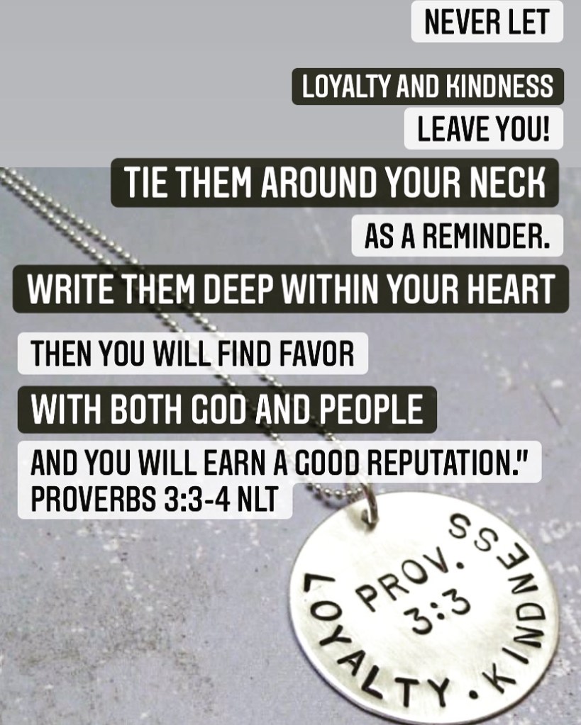 Help us to do whatever it takes to keep loyalty and kindness deep in our hearts and bind to our necks so that all that we do and say are guided by these divinely inspired characteristics. Have Your way in our lives, in Jesus name.